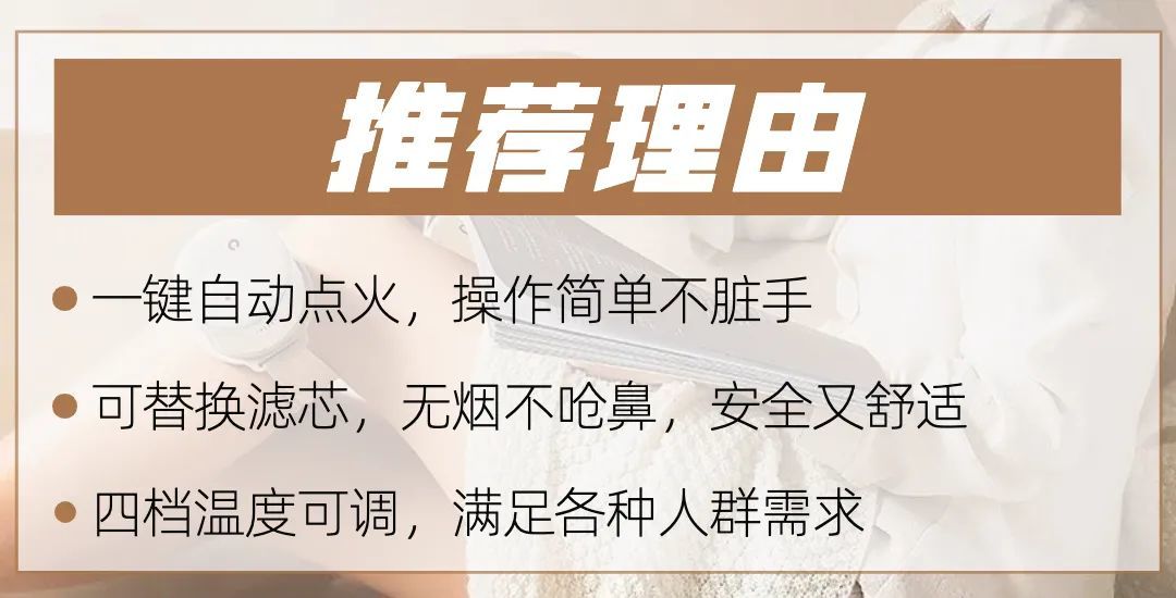 而且产品无烟,在家里、办公室、图书馆等场所都可以用。