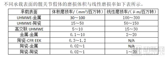 对于人工髋关节来说,髋关节需要承受很大的运动负载,摩擦、磨损和润滑是影响置换关节寿命的关键因素。磨损的重要性不仅仅局限于假体部件的完整性上,还体现在可引起不良生物反应的磨屑上。从数据对比上可以发现,陶瓷对陶瓷承载表面磨损率最低。